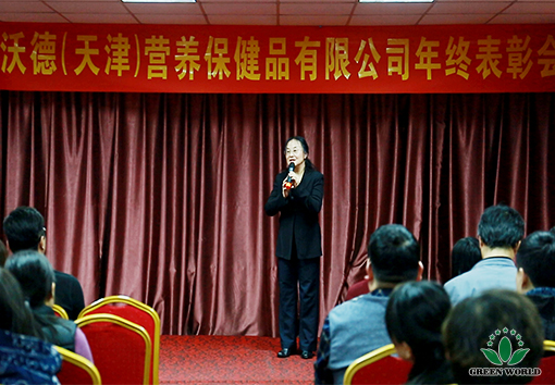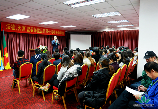 为让沃德绿世界员工进一步了解公司文化、个人职业规划,更好地契合岗位要求;同时对在沃德绿世界发展道路上涌现出的优秀员工进行褒奖。公司于2018年02月02日下午在公司一楼多功能会议室召开沃德(天津)营养保健品有限公司员工培训及年终表彰大会。此次会议受到沃德绿世界集团总裁李德明博士的高度重视,李博士携公司高管及员工积极参与。