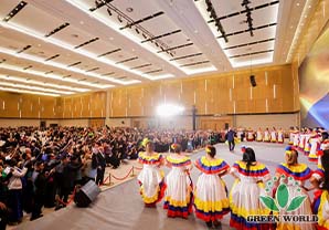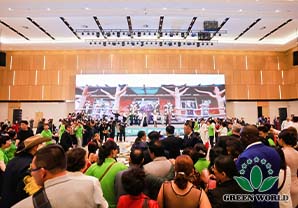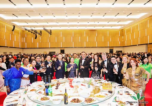 随后,沃德绿世界集团董事长李德明博士登台致辞,寄语现场家人,“希望大家今晚畅叙情谊、共享美食,在欢乐中感受沃德大家庭的温暖”。致辞结束后,董事长与拉丁美洲区总裁李红宾、中国区总裁刘少波、巴拿马直销协会主席Bella Amada Cubilla Campos、集团产品研发部总监赵华共同举杯,为晚宴正式拉开帷幕!