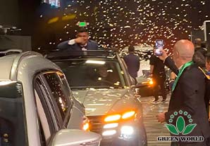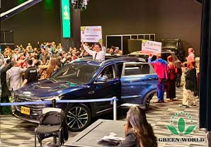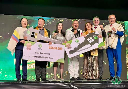 庆典特别设置了隆重的表彰环节,对在不同级别取得卓越成就的家人予以嘉奖。银级别1500人左右,金级别500人左右,白金级别267人,钻石级别400人左右,蓝钻级别4人,百万名人俱乐部4人。最引人注目的是,Edgar G.、Mauro F.、Jhon E.、Weimar R.、Andrés P.、Shirley F.、Erika J.等7人荣获名车大奖,Liliana和Alex Bohórquez更获得了令人羡慕的房屋大奖。每一位获奖者都用自己的汗水和努力书写着沃德绿世界的传奇。七位获得名车大奖的家人更是迎来了庆典的高潮时刻——在璀璨的烟花和全场的欢呼声中,七辆崭新的汽车缓缓驶入会场,获奖者们手持象征荣耀的车钥匙,满怀激动地坐进这份来之不易的荣誉之中,将现场气氛推向最高点。