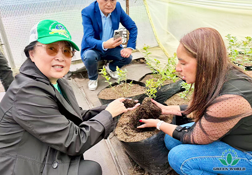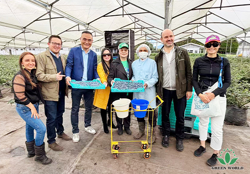 在FLORES FUNZA公司合伙人LUIS ALBERTO ARANGO先生、总经理ANTONIO TRUJILLO先生及蓝莓种植技术经理OLGA PARRA女士的陪同下,沃德绿世界集团代表团实地参观了该公司的蓝莓种植园区。从6个月的幼苗区,到1年、5年、10年乃至更久树龄的成熟蓝莓区,沃德绿世界团队以专业的眼光,细致考察了蓝莓在不同生长阶段的形态与长势。