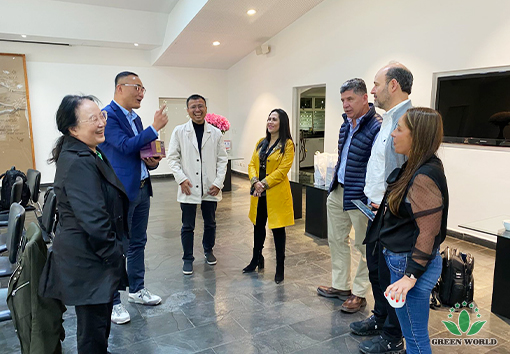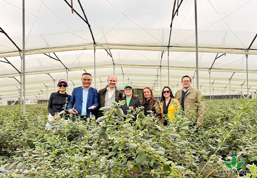 哥伦比亚当地时间11月10日,沃德绿世界集团代表团前往哥伦比亚花卉与蓝莓种植的领军企业——FLORES FUNZA公司进行参观交流,共同探讨蓝莓种植技术与产业合作新机遇。代表团由集团董事长、总裁李德明博士带队,成员包括集团董事、副总裁、拉丁美洲总裁李红宾先生、美国和加拿大分公司总经理梁莹女士、哥伦比亚分公司总经理Nohora女士、以及哥伦比亚分公司业务经理Miguel Gerrero先生。