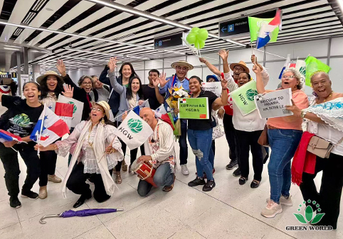 巴拿马当地时间2025年11月19日晚,沃德绿世界公司董事、副总裁、拉丁美洲总裁李红宾先生与哥伦比亚分公司总经理Nohora女士、业务经理Miguel先生、客服经理Angela女士一同抵达巴拿马机场,参加巴拿马分公司成立一周年年会活动。巴拿马分公司业务经理Bella女士率经销商家人们早早在机场等候,用最热情的方式迎接代表团的到来。