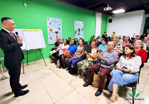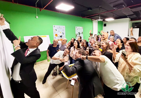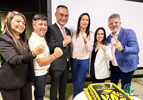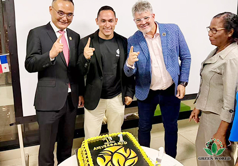 次日上午,沃德绿世界代表团一行前往巴拿马分公司,出席分公司成立一周年庆祝活动。李红宾先生向巴拿马分公司全体荣衔领导人致以诚挚的问候,并发表了激励演讲。他回顾了巴拿马市场一年来的发展,表彰了在本地市场开拓与服务中表现突出的领导人与团队,并勉励大家继续秉持“以人为本,诚信通天”的理念,共同推动沃德绿世界在拉美地区的事业迈向新高度。