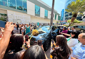 在全体嘉宾的见证与喝彩声中,迎来了激动人心的车奖表彰。厄瓜多尔分公司经销商领导人Diego Asmal与Walter Tutiven凭借其非凡的市场业绩与领导才能,赢得了这份象征顶级荣耀与自由的嘉奖。李红宾总裁亲自为他们送上祝贺,表彰他们为市场树立了卓越典范,其成功是个人奋斗与公司平台完美结合的生动体现。