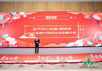 随后,沃德绿世界董事、中国区总裁刘少波先生登台致辞。他的发言充满力量,系统回顾了过去一年公司在市场开拓、业绩增长方面取得的亮眼成就,并对表现卓越的销售团队与合作伙伴给予了高度表扬。同时,他发布了新一年的战略目标与行动纲领,以激昂的话语激励全体同仁,在2026年要以“骏马奔腾”之势,勇闯新程,再创辉煌!